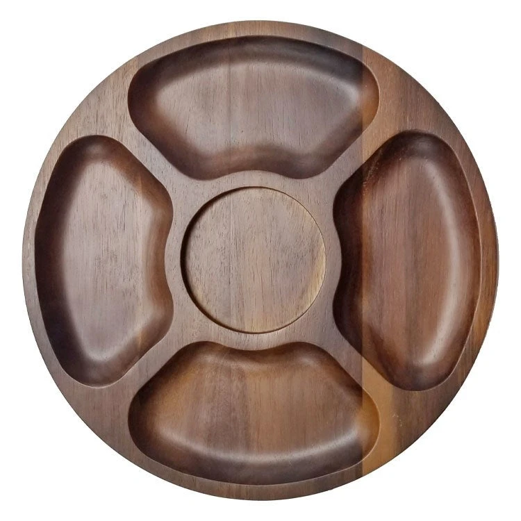 This acacia wood tray is a must-have item for anyone who loves to entertain! This is perfect for serving small snacks. The inner circle is perfect for serving dips of all kinds.