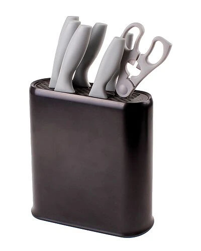 - The Leo line from BergHOFF brings playful colors, pure shapes and soft textures to the kitchen. This set is every kitchen’s must-have. Comes complete with 8″ carving knife, 8″ bread knife, 8″ chef’s knife, 6.25″ santoku knife, 5″ utility knife, 3.25″ paring knife, and scissors. Makes for a great gift to that new homeowner!