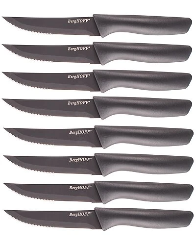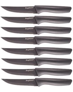 - This 8 piece steak knife set comes with sharp fully serrated stainless steel blades that cut effortlessly through the meat. the steak knives are made from rust-resistant stainless steel to keep its blades spotless & performing at their best. With razor-sharp serrations, the blade cuts through meat like its butter. Steak knife set has knives with extra sturdiness, and robust polypropylene handles with a protective coating that provides a firm grip.