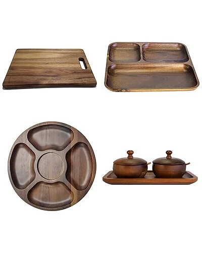 - With unique beauty and grain, every board is different and extremely durable.The durable cutting surfaces with a rich, warm wood grain makes this a great choice for food prep. Store your spices in style! With this acacia wood spice jar set, your spices will make a statement on any table. Can be used with or without the tray, the choice is up to you. Each jar can hold 2.5 oz.