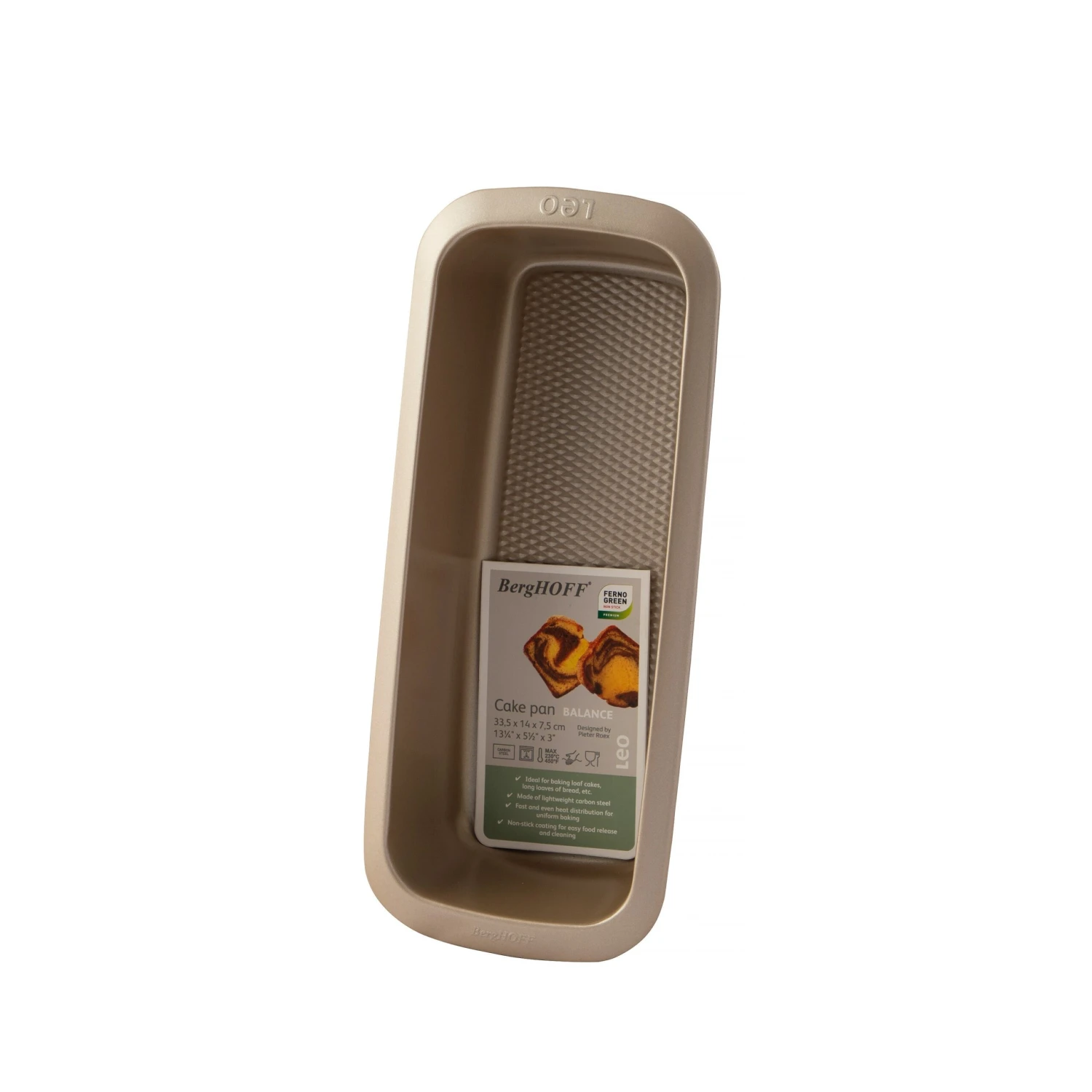 - CONSTRUCTION: Non-stick Carbon Steel Cake Pan 12″ x 4.5″ x 3″, Rectangular, Balance. Constructed with lightweight carbon steel and coated with a non-stick Ferno-Green, non-toxic finish.