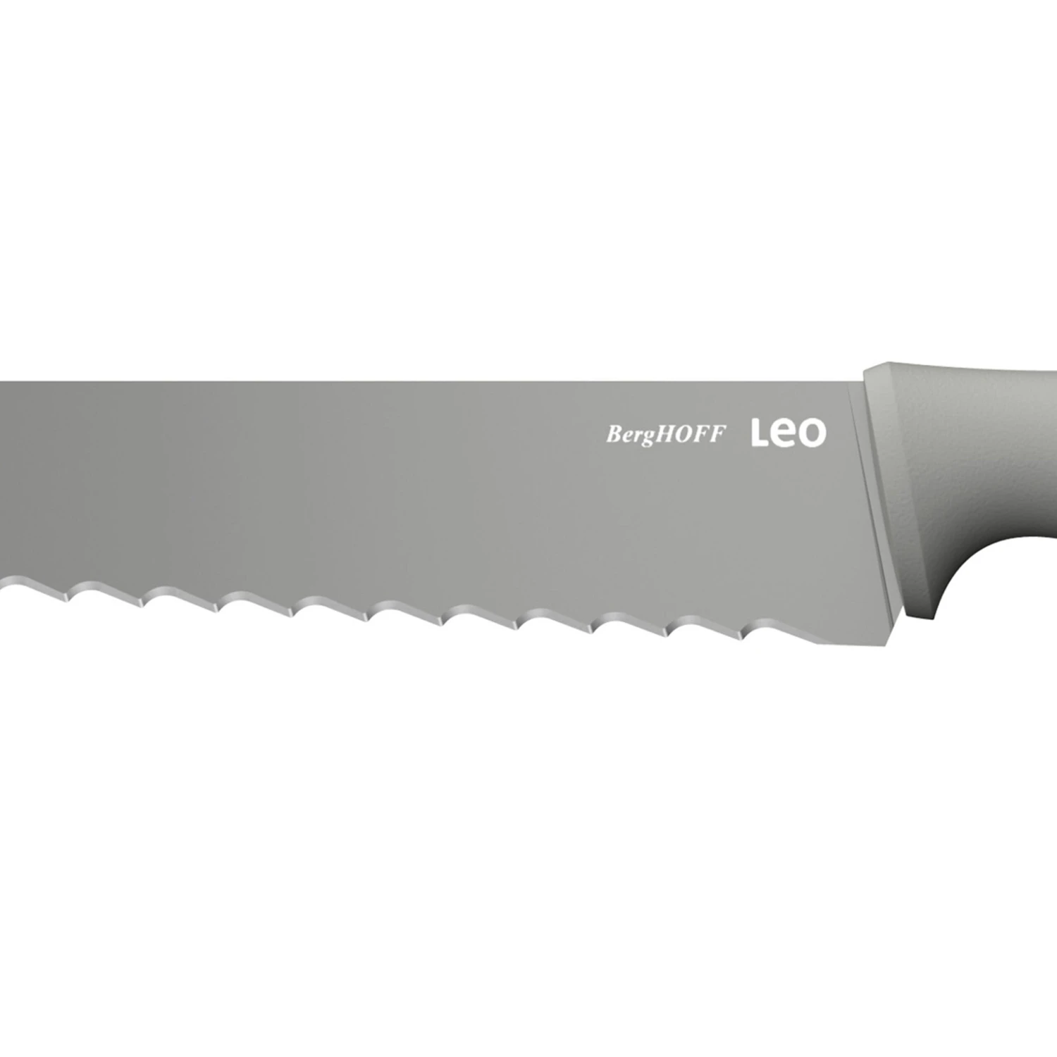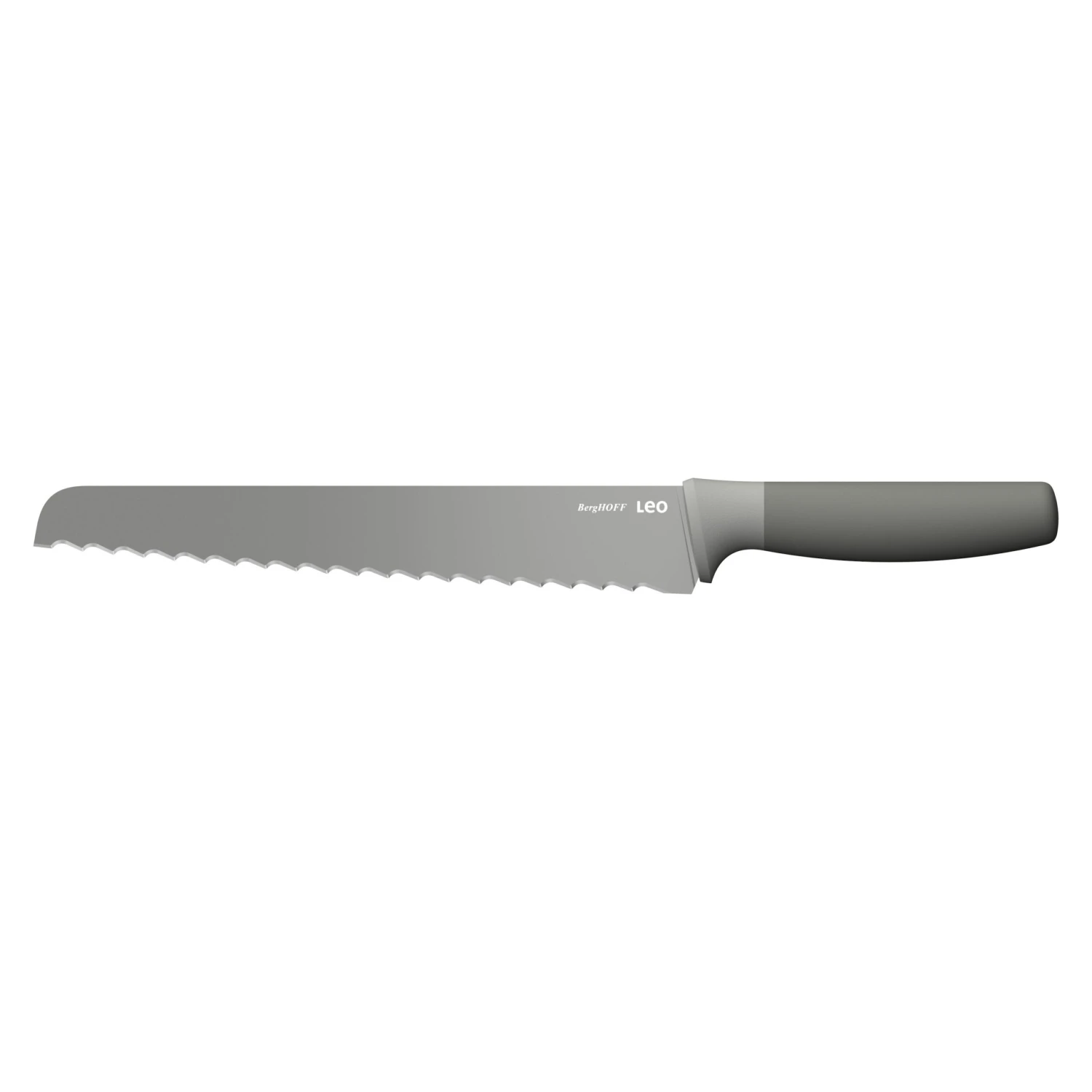 - CONSTRUCTION: Non-stick Bread Knife 9″, Balance, Gray. Crafted from a stainless steel blade and ergonomically designed recycled PP handle with a protective sleeve for added safety. Adds a soft pop of color to any kitchen. Knife is great to get even slices without tearing the bread up.