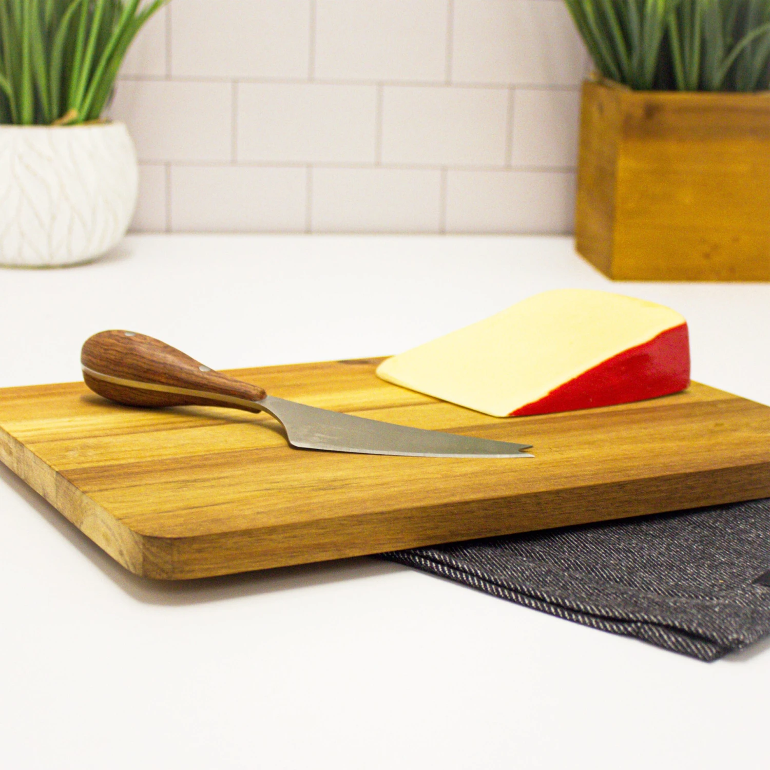 - The cheese knives can slice, cut, dice, chop both soft and hard cheeses. The bamboo cutting board makes a perfect serving tray also. Ergonomically designed handle for a firm and safe grip. Well-balanced with a heavy bolster for increased control.
