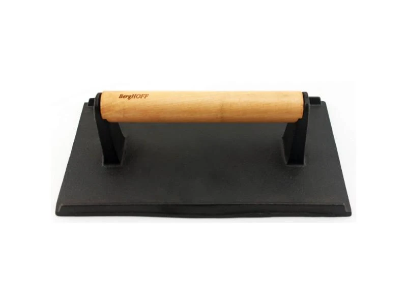 Heavy duty cast iron with hammered finish. Cast iron is known for it’s durable functionality, this bacon press cooks both sides evenly, leaving little room for shrinking. Also great for steaks and paninis!