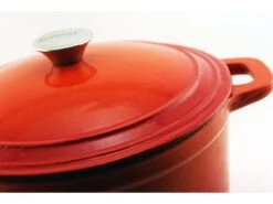 Set Includes: Neo 10” Cast Iron Fry Pan Red, Neo 11” Cast Iron Grill Pan Red, Cast Iron steak press Red and Cast Iron apple trivet Cast iron has great heat retaining abilities and can be used on any heat source. Classic in a modern design, solid material for all your cooking needs! Oven safe up to 400°F. Heavy-duty cast-iron base has a hammered finish. You’ll appreciate the stay-cool bamboo handle. This handy cast-iron grill press is coated with vegetable oil and cured at high heat to allow the oil to deeply penetrate the cast iron. It comes pre-seasoned and ready to use right out of the box. Apple Trivet: The enamel on cast iron design provides safety by allowing you to place hot cookware on it, rather than damaging surfaces countertop surfaces. Unique apple detail doubles this trivet as a decorative kitchen accent when not in use.