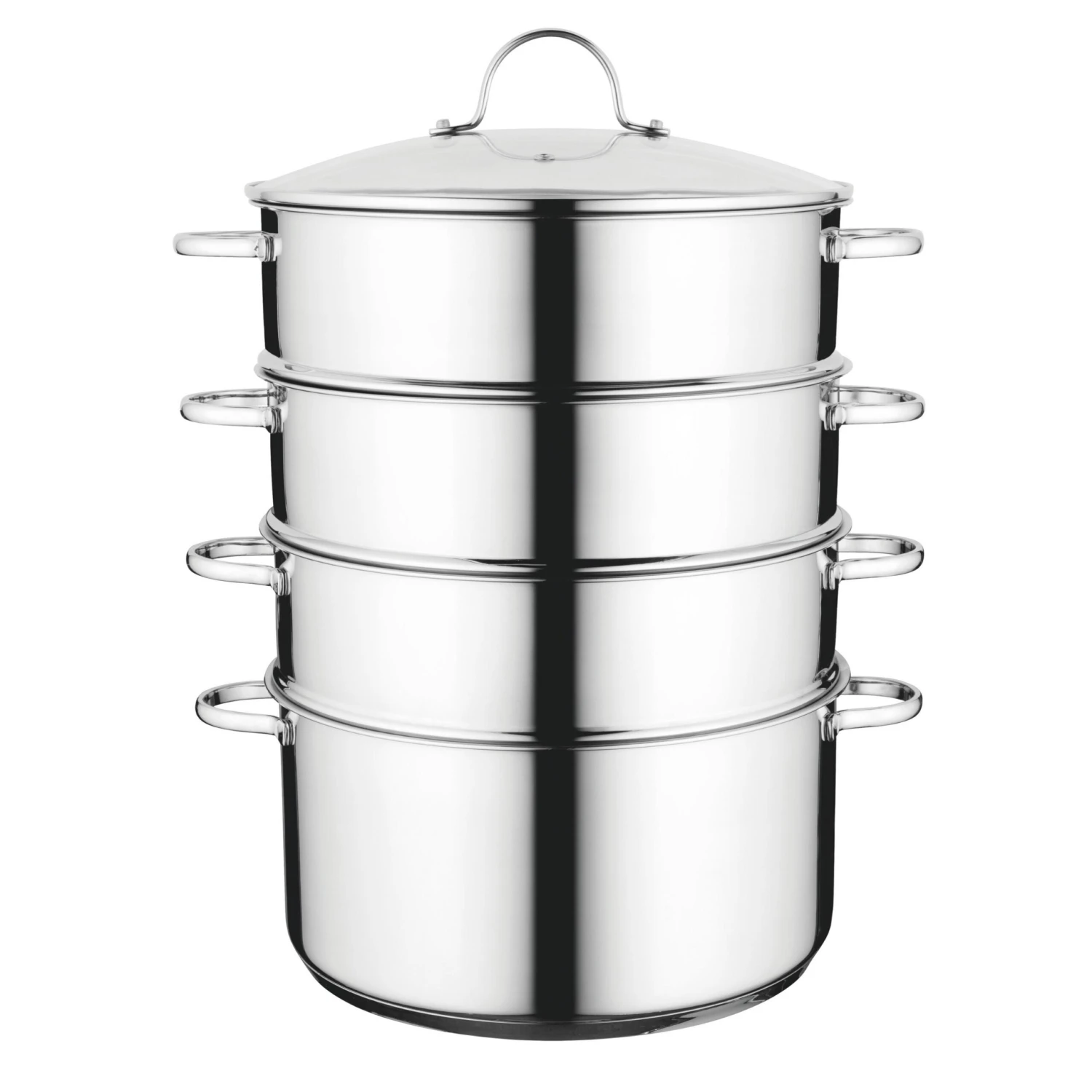 Now you can prepare multiple ingredients at once with the Comfort 5-piece Steamer Set. Comes with 1x base pot, 1x clear glass lid, and 3x steamer inserts, so you can easily assemble a 4-tier steamer with integrated steam vent to prepare multiple ingredients at the same time. Dishwasher safe also makes cleanup easy!