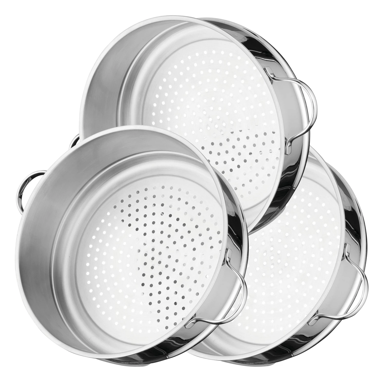 - Package includes: 3x Steamer Insert 11″, 9.0 qt., 1x Stockpot 11″, 9.0 qt., and 1x Glass Lid, Silver, Comfort