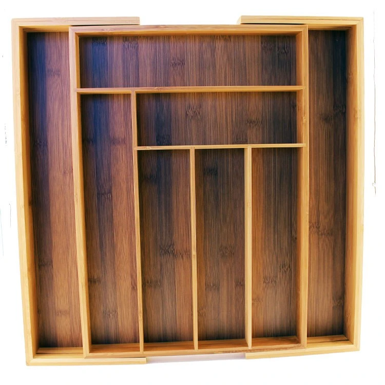 This eight-slot organizer gives you all the right spaces for flatware in renewable bamboo. The adjustable tray expands to fit almost any kitchen drawer and includes two additional dividers to customize the compartments to eight trays.