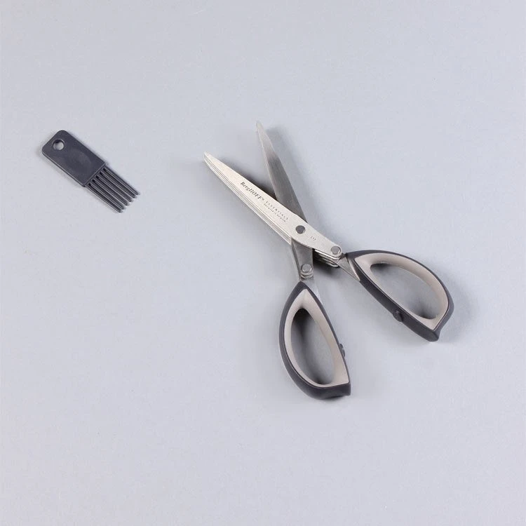 These multi-blade herb scissors have five stainless steel blades to simplify chopping and to keep delicate herbs intact. Multi-blades allow for fine, medium, or large cutting sizes. The scissors come with a cleaning brush.