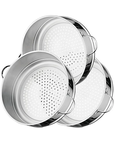 - Now you can prepare multiple ingredients at once with the Comfort 5-piee Steamer Set. Comes with 1x base pot, 1x clear glass lid, and 3x steamer inserts, so you can easily assemble a 4-tier steamer with integrated steam vent to prepare multiple ingredients at the same time. Dishwasher safe also makes cleanup easy.