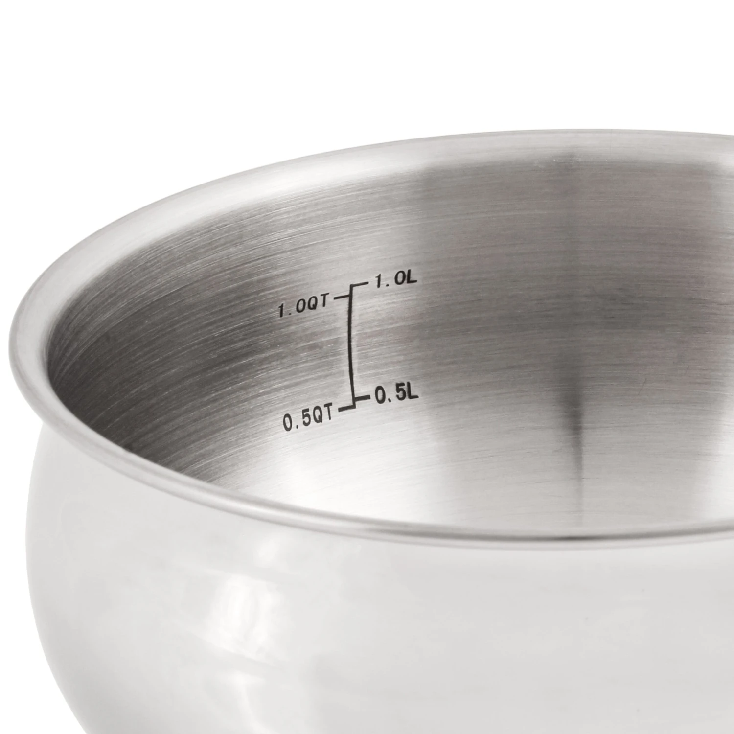 - Package includes: 18/10 Stainless Steel Saucepan 6.25″, 1.5qt., and Glass lid with integrated steam vent, Round Belly
