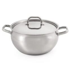 Essentials, versatile, belly shape cookware designed for everyday usage by BergHOFF. The high-quality 18/10 Stainless Steel with 3-layer capsule base is perfect for energy saving and even heat distribution. These pots and pans come with stainless steel lids seals in heat and moisture with sleek professional look. Non porous stainless steel cooking surface is safe for use with all kind of utensils. The convenient capacity marking inside each of pot helps you to control the portion for healthier cooking. Suitable for all kind of heat sources like Induction, Electric, Gas, Halogen, Vitro-ceramic. The polish finished exterior makes it very easy to clean. Oven, Boiler and Freezer Safe. Dishwasher Safe. Environment-friendly cookware.