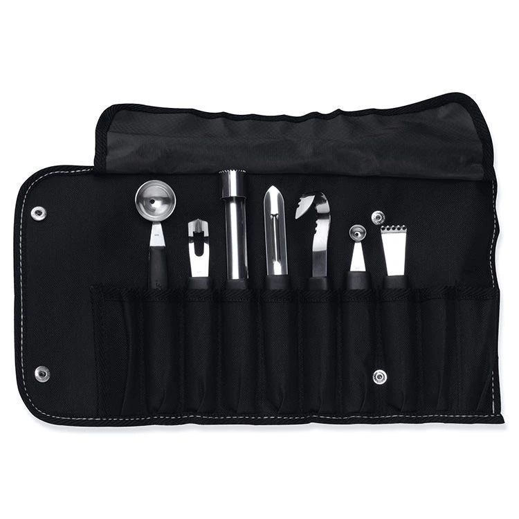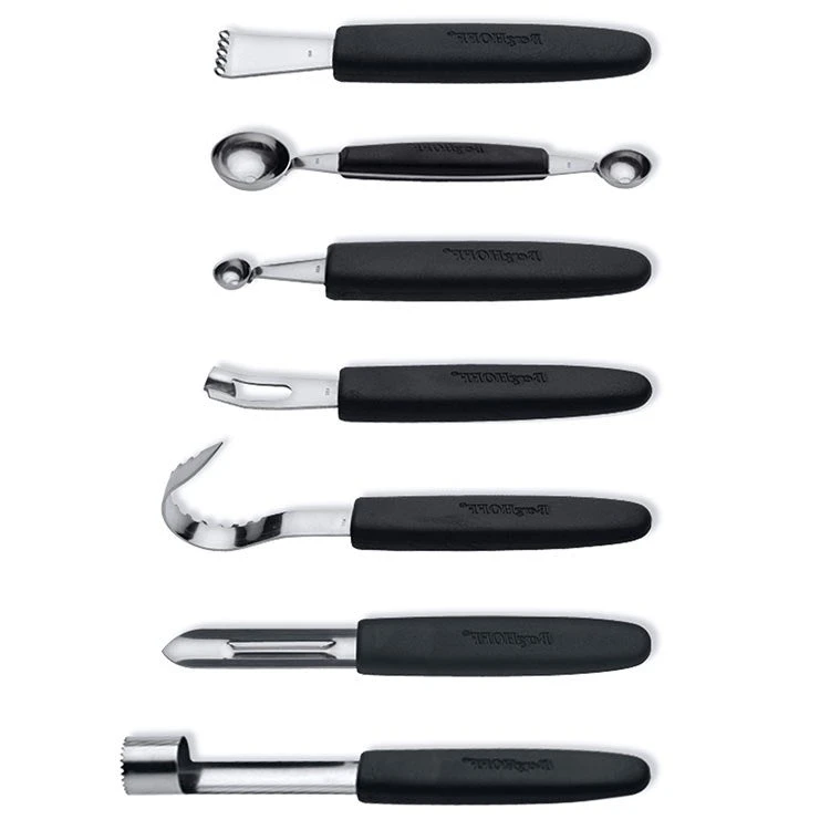 The BergHOFF garnishing set is a great addition into any kitchen or bar. The tools can be used in so many different ways, prepare a summer fruit salad or zest up a fancy drink for your friends. The tools are made of high-quality stainless steel with polypropylene handles for easy cleaning and durability. The set includes a 5. 25″ lemon zester, a 5. 25″ double melon baller, a single 5. 25″ melon baller, a 5. 5″ channel knife, a 6. 5″ butter curler, a 6. 5″ peeler, a 7″ apple corer, and a 14. 5″ x 7. 75″ folding bag.