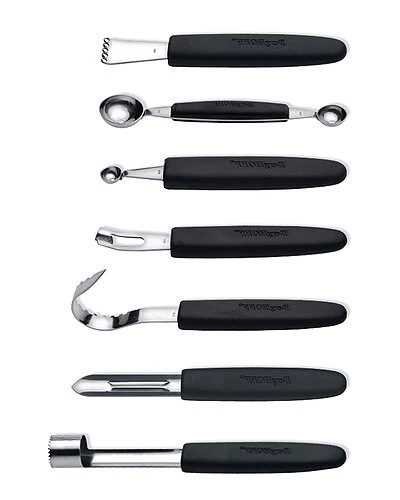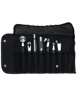 - Design details: The BergHOFF garnishing set is a great addition into any kitchen or bar. The tools can be used in so many different ways, prepare a summer fruit salad or zest up a fancy drink for your friends. The tools are made of high-quality stainless steel with polypropylene handles for easy cleaning and durability. Set includes: 5.25 lemon zester, 5.25 melon baller (double) 5.25 melon baller (single), 5.5 channel knife, 6.5 butter curler, 6.5 peeler, 7 apple corer, and 14.5 x 7.75 folding bag.