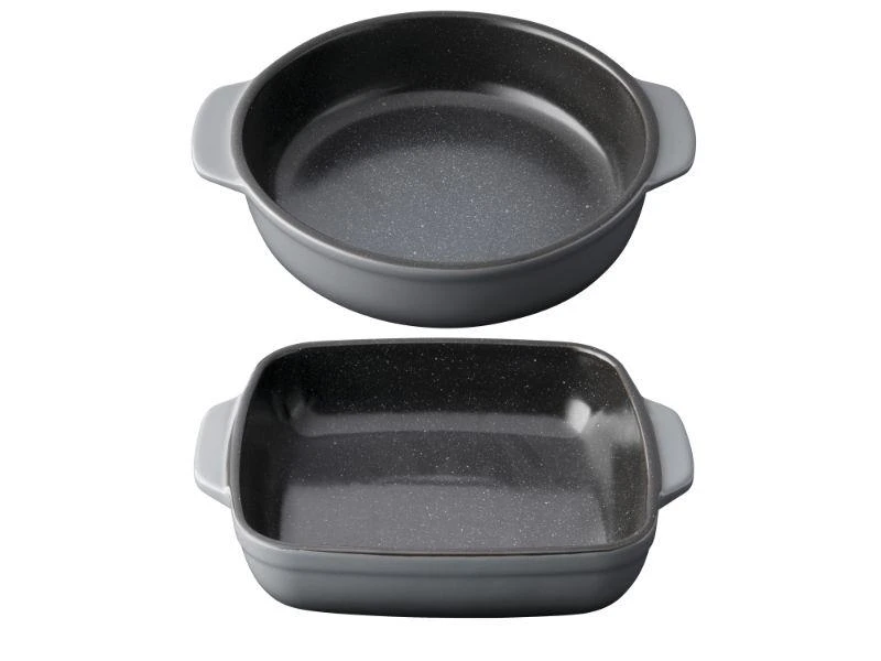Bake, serve, store and reheat meals, you can do it all with these baking dishes! Whether you’re in the mood for a chicken pot pie or some freshly baked cinnamon rolls, just get out this stoneware beauty and slide it in the oven with the help of the convenient handles. The durable material with enamel coating makes sure your meal or snack bakes evenly, keeps it warm at the table and is a breeze to clean once you’ve finished those last bites. This dish is microwave, oven and dishwasher safe. This set includes 1x 9.5″ round baking dish, 1x 9.5″square baking dish