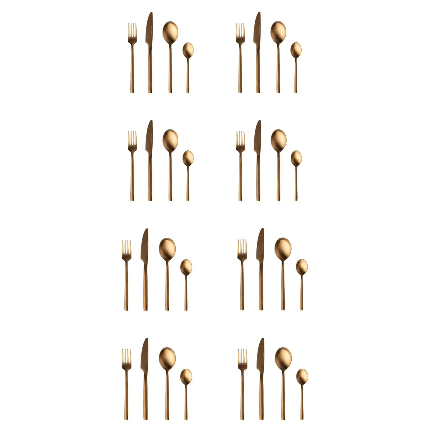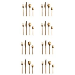 Whether you want to give your everyday dinner a glamorous touch or create a stylish table setting for your next dinner party, with this gold-plated flatware set you’ll instantly glam up your dining table. The knife, fork, spoon and dessert spoon are each made of high-quality stainless steel and feel comfortable in your hands and your mouth. Once you’ve finished your meal, no need to worry about the clean-up, just pop the cutlery in the dishwasher and let the machine work its magic! Service for 8.