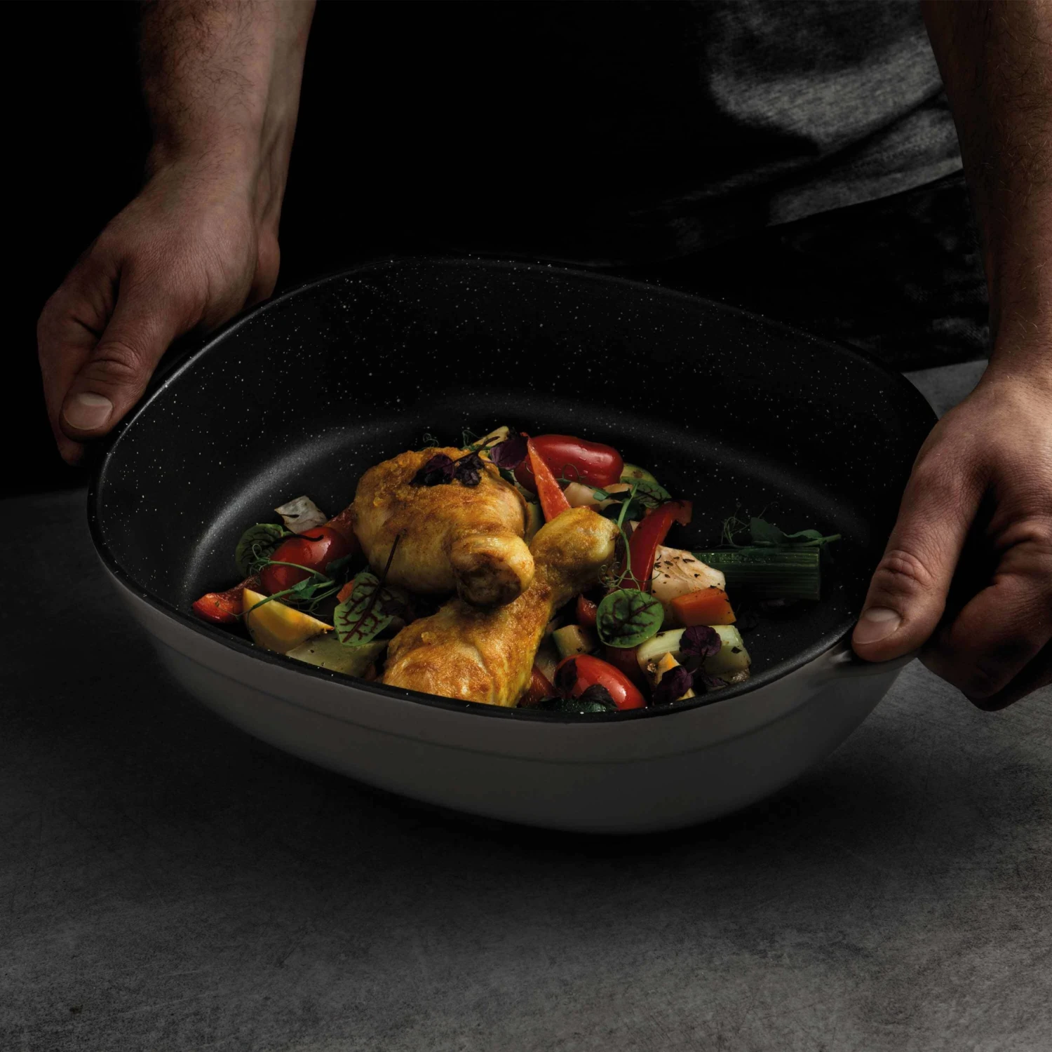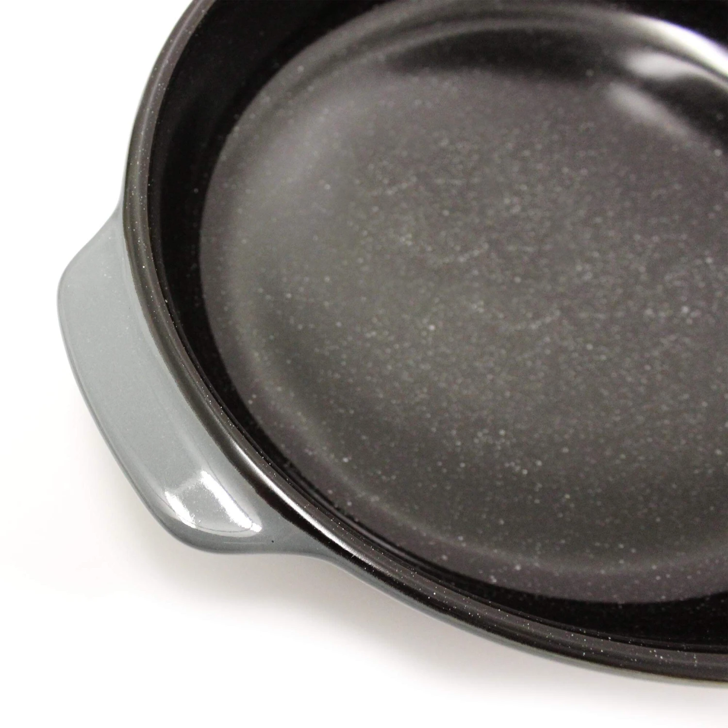 Bake, serve, store and reheat meals, you can do it all with this baker! Whether you’re in the mood for a chicken pot pie or some freshly baked cinnamon rolls, just get out this stoneware beauty and slide it in the oven with the help of the convenient handles. The durable material with enamel coating makes sure your meal or snack bakes evenly, keep it warm at the table and is a breeze to clean once you’ve finished those last bites.
