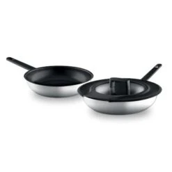 - Material: One fry pan is made from high-quality 18/10 Stainless steel that is quick to heat and even heating, and the other pan is made from Non-stick Ferno-Green, PFOA Free Coating for healthier no-oil or low oil cooking. Glass lid with silicone rim allows you to keep an eye on your foods while it’s cooking, no need to lift the lid.