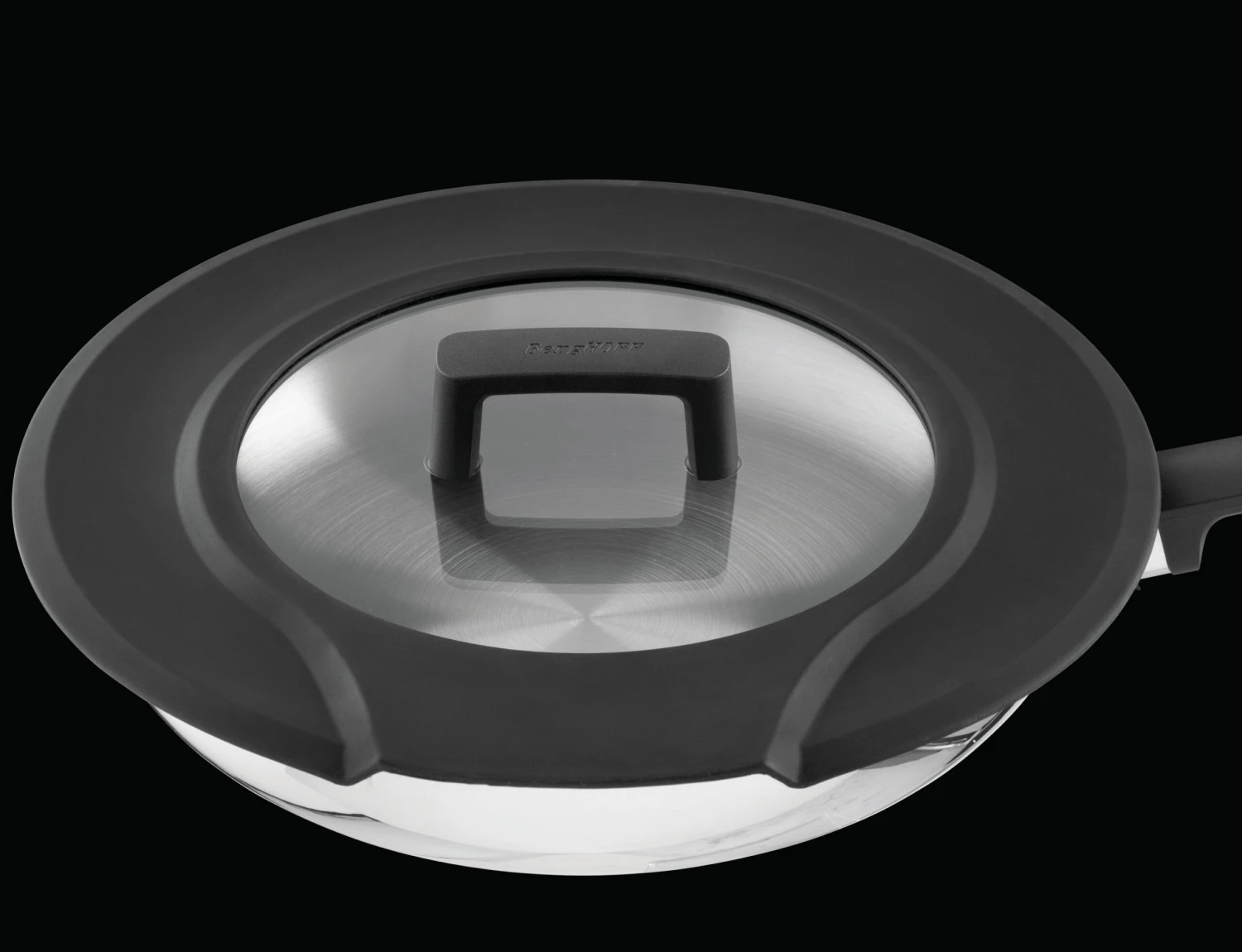 The Gem downdraft cookware was specially designed to ensure a controlled steam release and directs the steam from inside the pot directly to the exhaust fan. This not only eliminates any lingering odors but also minimizes heat loss for energy-efficient cooking. Perfect fit for all cooktops, cooker hoods and downdraft exhaust systems. The universal lid can be used on both fry pan and has integrated air ducts in its silicone rim to stimulate the air flow. The lid can either be used to close off the pot in order to speed up the heating process, create a low pressure cooker and preserve the heat and flavors in the pot during cooking, or, when rotated 180 degrees, to let the air escape and guide the steam from inside the pot directly towards the downdraft vent. Constructed of surgical grade 18/10 Stainless steel for long lasting use. Both fry pans have a high-quality non-stick coating for easy food release and clean-up. Both pans feature stay cool handles that have hanging loops for easy storage.