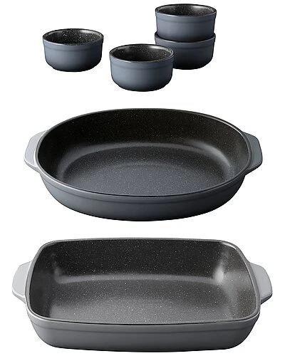 - Large enough for a family-sized stew and durable enough to turn out countless meals of throughout the years, this baking dish set is the perfect addition to your bakeware. Its wide handles help you to get a good grip on the dish while the enameled coating makes sure you can easily scoop your food from the dish and dont need to waste any time on the clean-up. Set Includes: 3.4qt rectangular baking dish, 5.3qt oval baking dish and set of 4 ramekins.