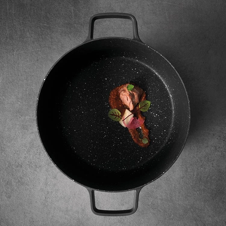 This medium-sized cast aluminum casserole with high-end multi-layered non-stick interior is the perfect partner for preparing a delicious meal. It’s easy to handle, can be used on any stovetop and is conveniently transferrable from hob to oven to dining table. The glass cover allows you to preserve all the authentic flavors of your food without losing valuable energy.