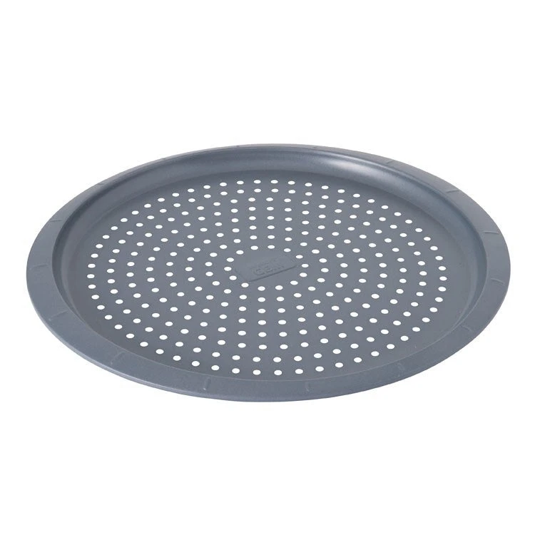 Easily cook up a delicious homemade pizza with the help of this perforated pizza pan! The carbon steel provides an even heat distribution for a consistent bake while the perforations help to produce that perfectly crisp finish. Once your pizza is done, you can easily make even slices with the help of the integrated grid lines on the pan’s edge.