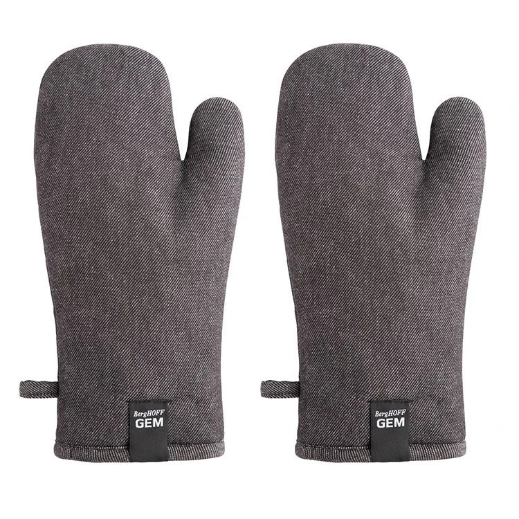Whether you’re taking a baking tin out of the oven, picking up a hot pot from the stovetop or getting a steaming bowl out of the microwave, always protect your hands in style with this set of oven mitts. They’re made from 100% cotton with a Black denim look that perfectly matches the Gem cookware and have a soft terry toweling lining. Once you’re done, just store them in your kitchen drawer or use the convenient hanging loop for easy storage.