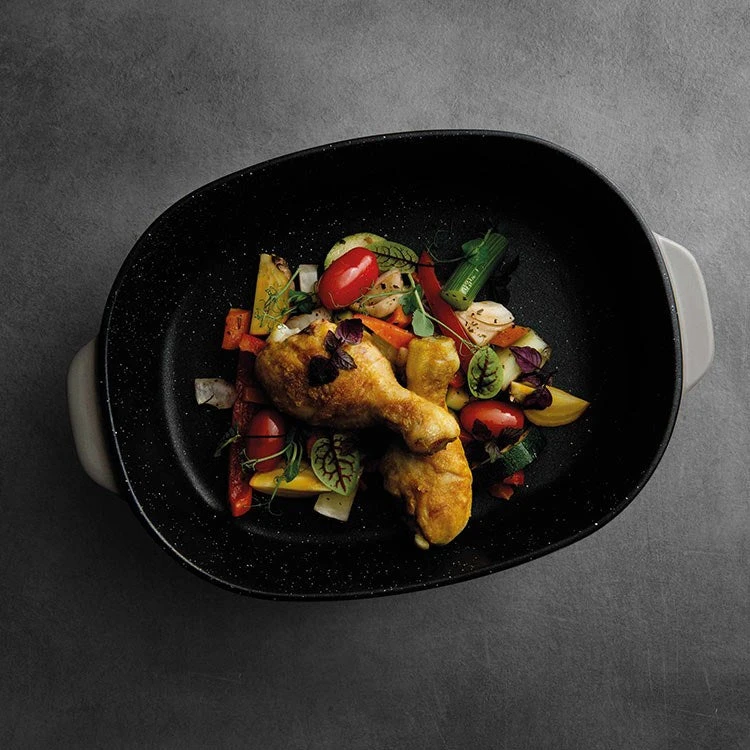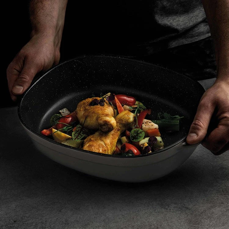 Large enough for a family-sized stew and durable enough to turn out countless meals of throughout the years, this oval baking dish is the perfect addition to your bakeware. Its wide handles help you to get a good grip on the dish while the high-quality non-stick coating makes sure you can easily scoop your food from the dish and don’t need to waste any time on the clean-up.