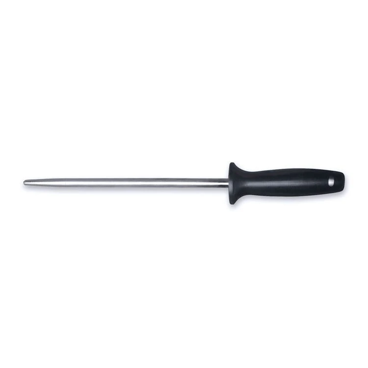 The 10″ sharpening steel will realign the edge and remove any niche or burr. An oval rod provides more surface contact with the edge to achieve same results as traditional rod but with fewer strokes. It’s a useful and perfect addition to any chef whether novice or expert.