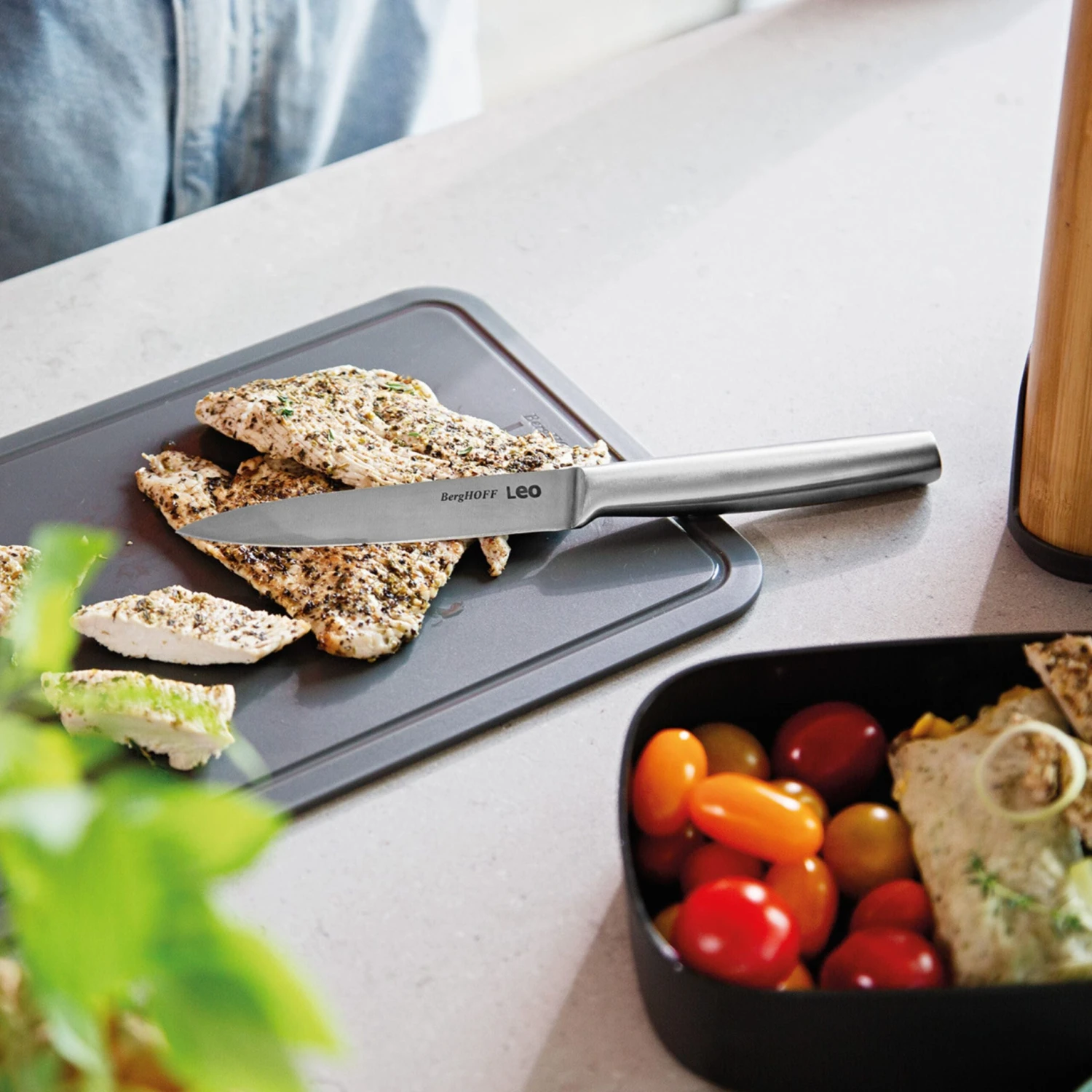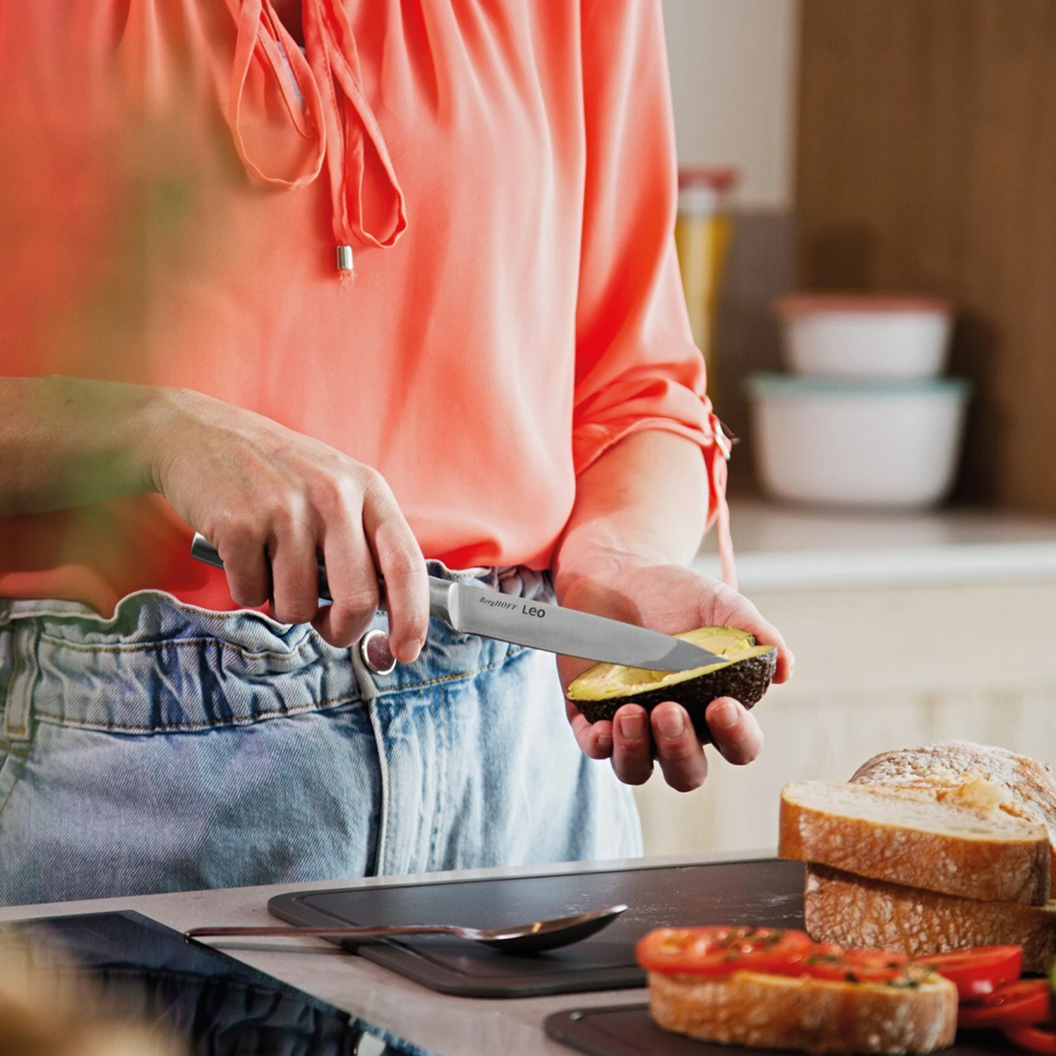 - VERSATILE AND MULTIFUNCTIONAL: This convenient utility knife is a true jack of all trades, between a paring knife and a chef’s knife, making it perfect for everyday cutting tasks. From peeling mid-sized fruits and vegetables to cutting citrus fruits and slicing sandwiches, the high-quality stainless-steel blade handles them all in a jiffy. Its compact size and sharpness, the utility knife serves as a reliable multi-purpose tool, suitable for a variety of cutting tasks in the kitchen.