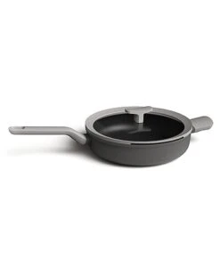 - With its aluminum body that ensures a fast and even heat distribution and non-stick coating which allows you to cook with little to no oil, this covered saute pan is sure to become one of your favourite cookware items in no time. Featuring a sturdy stay-cool handle thats soft to the touch and provides a comfortable grip. So whether youre in the mood for some risotto, paella or sauteed veggies, just place your ingredients in the pan and keep an eye on your food through the clear glass lid that helps you to cook energy-efficiently and features a drain hole for effortless straining. *Not recommended for gas cooktops