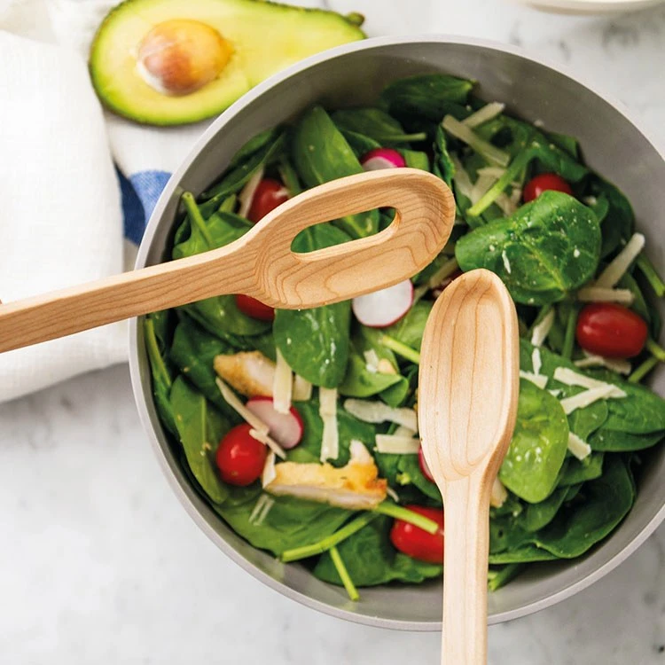 Toss and serve your fresh salads in style with these wooden salad servers. Enjoy the combination of the contemporary design and the solid maple wood to add a natural touch to your dinner table. Whether you’ve prepared a crispy summer salad or a hearty potato salad, the Leo salad servers are your loyal helpers.