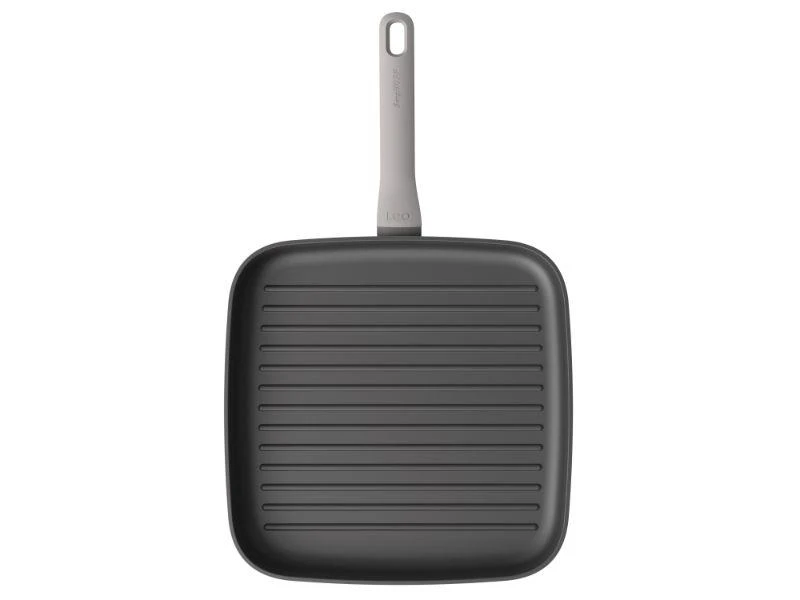 A couple of perfectly seared steaks, fish filets or a variety of vegetables, it’s a piece of cake with this 11 inch grill pan! It’s made from robust, yet lightweight aluminum and can be used on any kind of stovetop, including induction. The grill pan’s stay-cool handle ensures a comfortable and safe grip while the raised grill lines leave those typical grill marks and allow any fat and moisture to escape easily so you get that extra crispy result. An added bonus is the high-quality non-stick coating that guarantees an easy food release and makes the clean-up a breeze. Leo Frypans/ Grill : body 3.3mm/ Induction Bottom 3.6mm