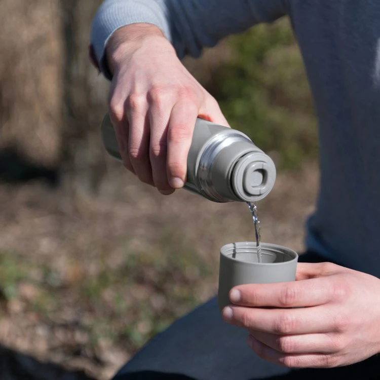 Take a break wherever you are with a cup of your favorite hot or cold beverage straight from this stainless steel thermos. The convenient push-to-drink system allows you to pour the liquid in the lid that doubles as a practical drinking cup with a single push of the button. No matter whether you’re carrying around iced tea or boiling hot coffee, the double-walled construction keeps your drink hot or cold and leaves the flask cool to the touch.