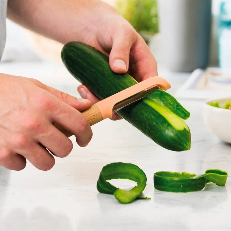 A bag of potatoes, a stack of carrots, or a bunch of apples, you’ll have them peeled in no time with the Leo straight peeler. The stainless steel blade glides right through the skins, giving a thin peeling you won’t be able to match with a knife. At last, it’s fun to peel fruit and vegetables thanks to the lively Orange color and the ergonomic soft-touch handle that fits your hand like a glove!