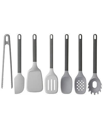 - The must have tool set for your kitchen! With all the tools you need to make a homecooked meal, you will love to host dinner parties. All the utnesils come in a soft grey color and will compliment any kitchen. Clean up is a breeze, all items are dishwasher safe so you can kick back and relax when dinner is done. Set Includes: serving spoon, pasta spoon, skimmer, tongs, spatula, slotted turner, and turner.