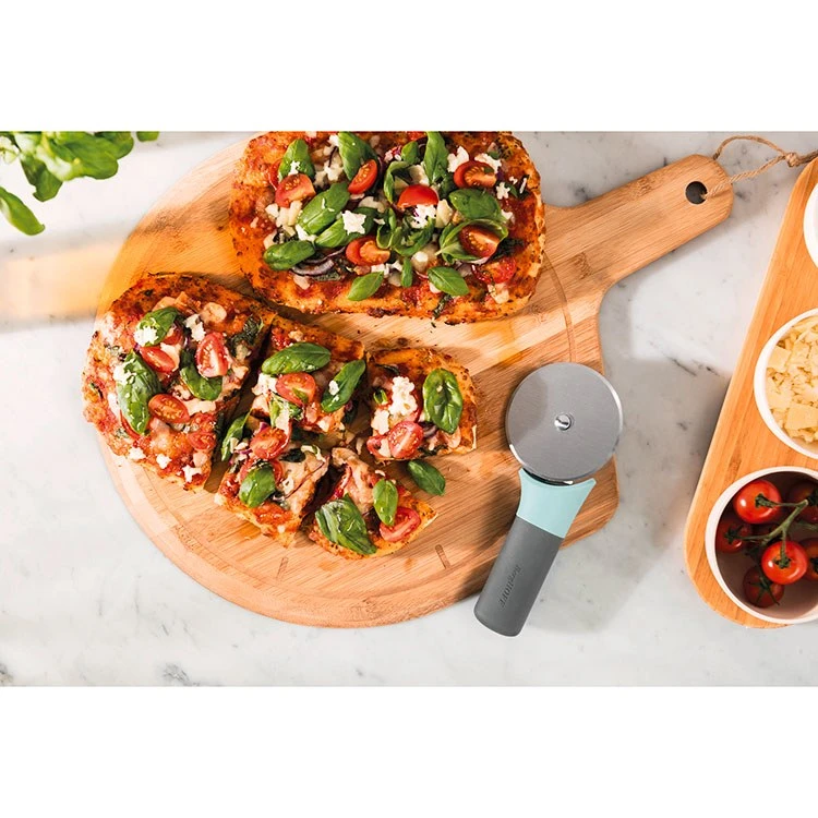 Frozen pizzas, fried dough pizzas or fresh dough pizzas, you’ll easily serve them with style when you’ve got this pizza serving set within reach. The bamboo pizza shovel is the ideal assistant to take your pizza out of the oven and create perfectly even slices thanks to the integrated grid lines. Simply slide the sharp stainless steel blade of the pizza cutter through the dough and keep maximum control thanks to the cutter’s ergonomic soft-grip handle. It’s easy as pie!