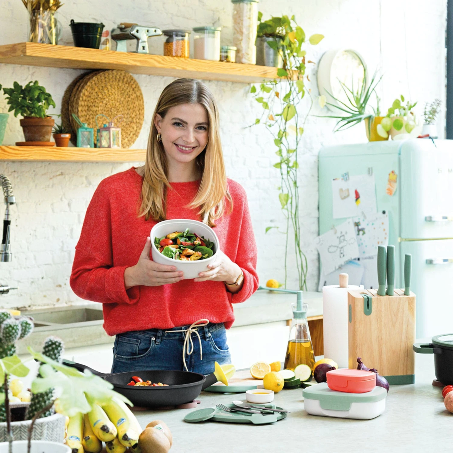 A Greek salad, a Caesar salad or a fruit salad, no matter which kind of healthy dish you’re serving, it will taste great in this stylish salad bowl. No more soaked ingredients due to the integrated sauce container. Just mix all your favorite ingredients and consume them directly with the accompanied flatware set. The reusable stainless-steel cutlery will last a lifetime with gentle care. The lunchbox components (excluding flatware) are easy to clean and dishwasher safe. The salad bowl is freezer proof to store your meal for the next day, and microwavable to heat up at the office. There’s no need to use disposable food containers or plastic cutlery when you can take your salad bowl set anywhere with you. Match with other pieces in the Leo travel range, such as food containers and travel mugs.