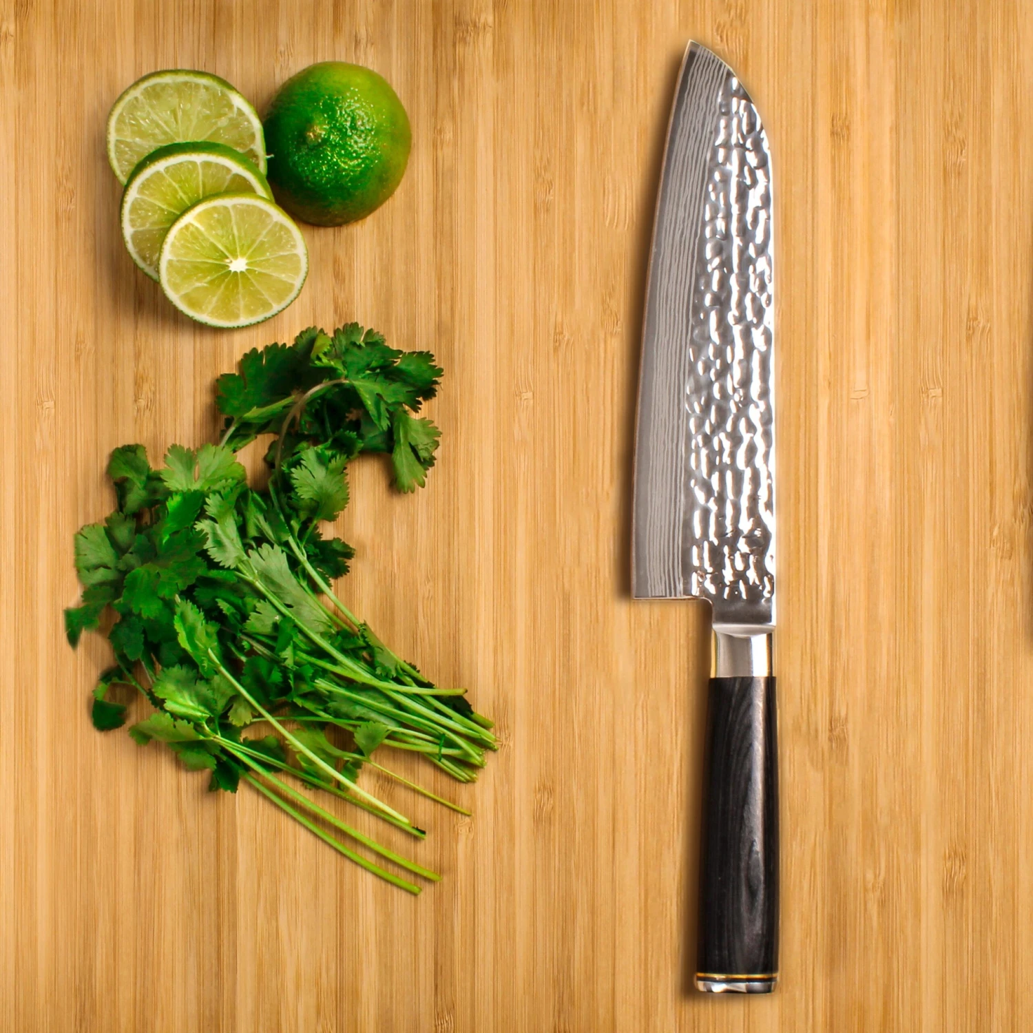 The appeal of these Hammer Dot steel knives extends beyond the intricate patterning on the blades to their superior strength and razor-sharp edges. Beautifully balanced with a heavy bolster and ergonomic handle, these remarkable blades are truly something special. Set Includes: 7.5″ Chef Knife, 5.5″ Santoku Knife, 5.5″ Cleaver)