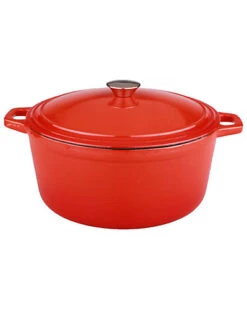 - Orange cast iron covered casserole dish