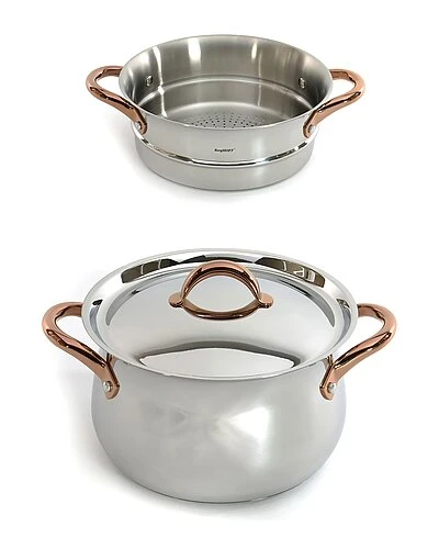 - This dutch oven and steamer is designed for energy-efficient cooking and even heat transfer throughout the complete surface. High-quality 18/10 stainless steel lid seals the pot, preventing moisture and juices from escaping. Set Includes: 5 Qt dutch oven with lid and steamer.