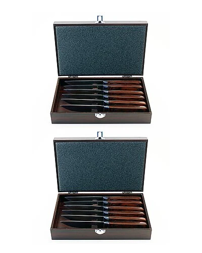 - Design details: Set Includes: 12pc Knife set with 2 wooden storage cases. The steak knives are triple-riveted Pakka wood handle ensures superior balance and comfort. The carving-style blade makes cutting meat and poultry effortless. Forged of high-carbon stainless steel.