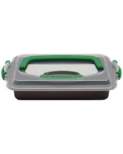 - Design details: patented guideline grid around the outer edges of every pan the cutting tool with silicone handle is tough enough to cut the cake yet won’t damage your pan