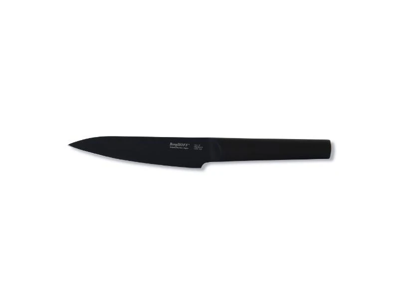 The Ron 5″ Black Utility Knife offers a range of versatile knives for the most common jobs in the kitchen. Choose from black steel knives featuring a titanium and non-stick coating with either contrasting ashwood handles or matching black handles. Or simply don’t choose and mix the two styles. Well balanced with a heavy bolster providing perfect balance for increased control. Handle: 18/10 Stainless Steel Hollow Handle, Blade: Chrome-molybdenum-Vanadium steel with a black layer coating (titanium + non-stick coating)