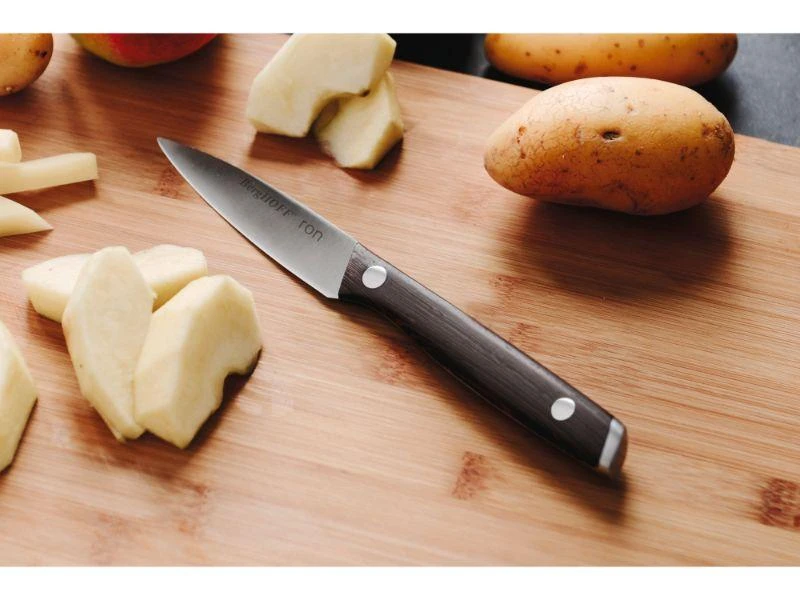 Peeling a hot potato, cutting thin julienne strips or deveining shrimps, whatever cooking task is waiting for you, this stylish paring knife is ready to lend a hand. Thanks to its smaller and slightly curved blade, it’s a great tool for those precision tasks. When you pick it up you’ll immediately notice the warm touch of the strong and crack-resistant wooden handle that gives you total control of the blade. So no matter if you’re cutting in the hand or on a cutting board, the paring knife offers maximum safety and an optimal cooking experience.