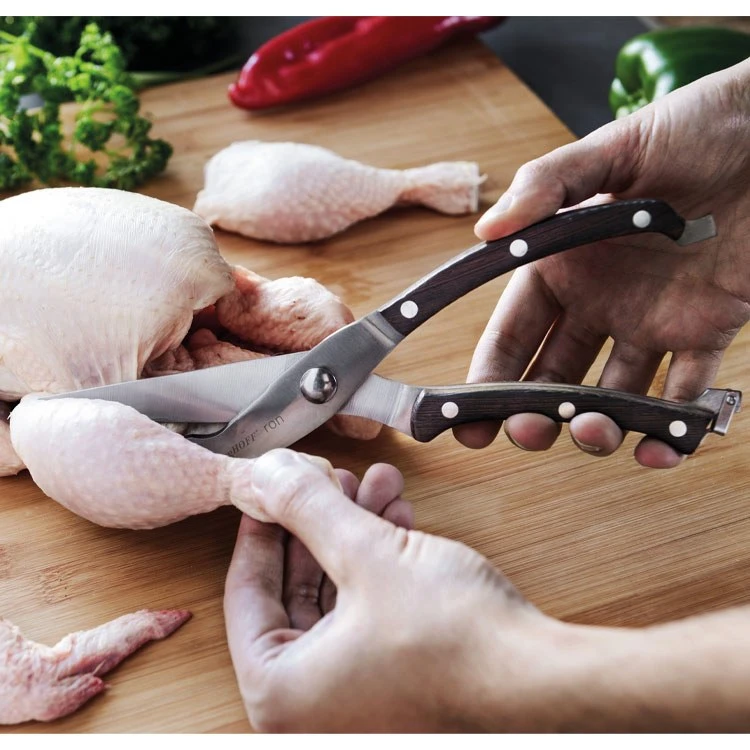 Ranging from trimming or cutting poultry to cracking nuts and handling seafood, with this pair of poultry shears it’s a piece of cake. The sharp stainless steel blades easily cut through those tough bones and joints while the triple-riveted wooden handle provides a comfortable grip for both right-hand and left-hand use. When you’re not using the shears, the convenient handle lock keeps the blades closed for storage and prevents them from opening accidentally.