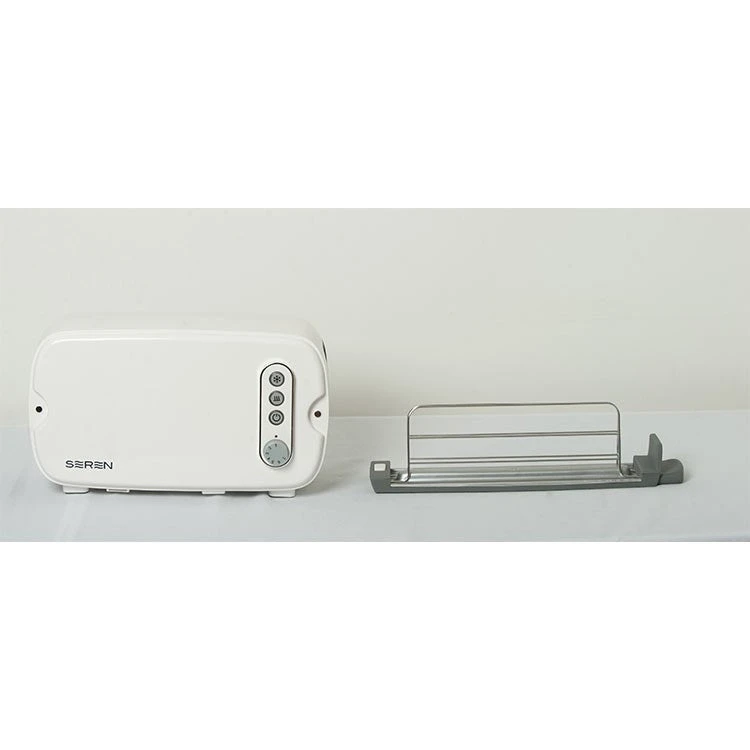This Seren toaster’s wide, side-loading toaster rack allows you to load all types of breads in all shapes or sizes. Toast baguettes, ciabatta, paninis, warm croissants and pastries, and toast wholesome sandwiches, savory pastry snacks, and sweet treats too. It has a defrost and cook mode and a reheat function-perfect for last night’s pizza! Key features include a wide loading toaster rack, multi-use toasting, light intelligent technology, thermo regulated for even browning, and a removable Silver front panel cover that doubles as a serving tray and that easily attaches with a magnet.